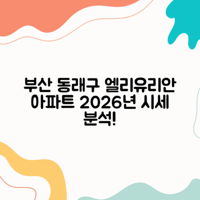 부산시 동래구 명륜동의 엘리유리안 아파트, 여러분은 이 곳의 미래를 어떻게 생각하나요? 시세가 어떤 변화를 겪을지 궁금하지 않으세요? 특히 2026년 1월의 시세는 많은 이들의 관심을 받고 있습니다.