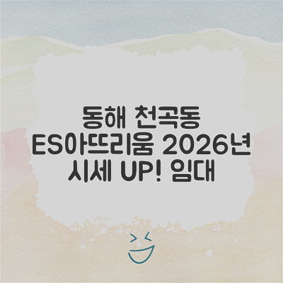 2026년의 강원도 동해시 천곡동 ES아뜨리움(민간임대) 아파트 시세에 대해 궁금하신가요? 시세는 여러 요인에 따라 달라질 수 있는데요, 그 중에서도 몇 가지 중요한 요소를 살펴보겠습니다.